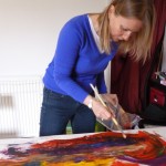 On Thursday, I ran a one to one workshop with Karen Wilson. The aim of the workshop was to Free the Artist Within and I think we achieved what we set out to here as by the end of our 2 hour session, we both had paint on our fingers, smiles on our faces and had covered our paper rolls in vibrant swathes of colour with incredible depth and beauty.